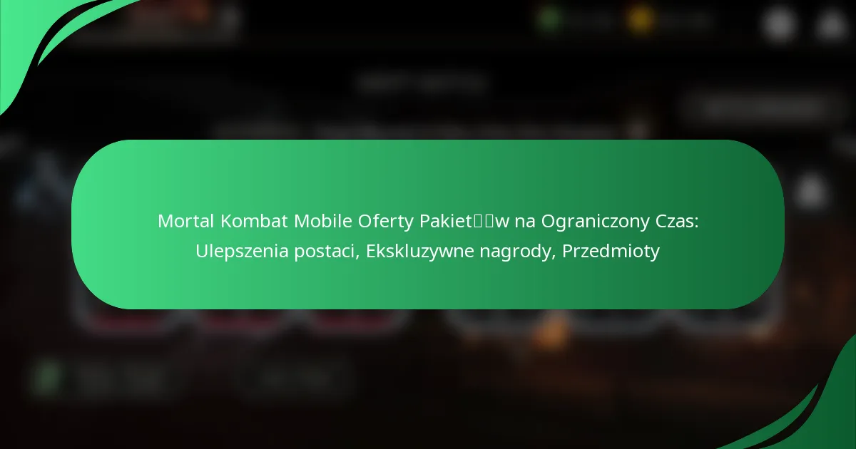 Mortal Kombat Mobile obecnie oferuje ograniczone czasowo pakiety, które pozwalają graczom wzbogacić swoje doświadczenia w grze dzięki ulepszeniom postaci, ekskluzywnym nagrodom i cennym przedmiotom. Te pakiety nie tylko poprawiają zdolności i wydajność postaci, ale także oferują unikalne nagrody, które mogą znacząco wpłynąć na rozgrywkę. Z uwagi na to, że te oferty są dostępne przez krótki czas, gracze są zachęcani do szybkiego działania, aby maksymalnie wykorzystać swoje przewagi w walce.