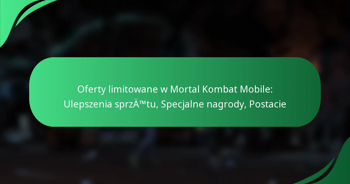 Pakiety limitowane czasowo w Mortal Kombat Mobile to specjalnie skomponowane zestawy, które gracze mogą nabyć przez krótki czas. Zazwyczaj zawierają cenne zasoby, które wzbogacają rozgrywkę, takie jak fragmenty postaci, wyposażenie i inne przedmioty. Głównym celem tych pakietów jest zachęcenie graczy do głębszego zaangażowania się w grę oraz zapewnienie im możliwości zdobycia rzadkich postaci lub przedmiotów, które mogą nie być dostępne w regularnej rozgrywce.